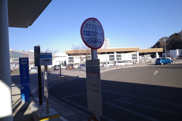 本塩釜駅の「アクアゲート口」のバス乗り場と時刻表