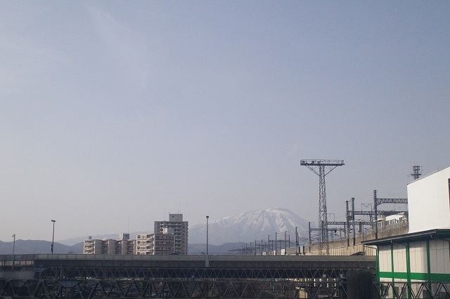 西口に抜ける連絡通路から岩手山がきれいでした。