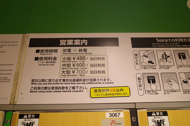 仙台駅三階新幹線中央改札脇のコインロッカーの案内