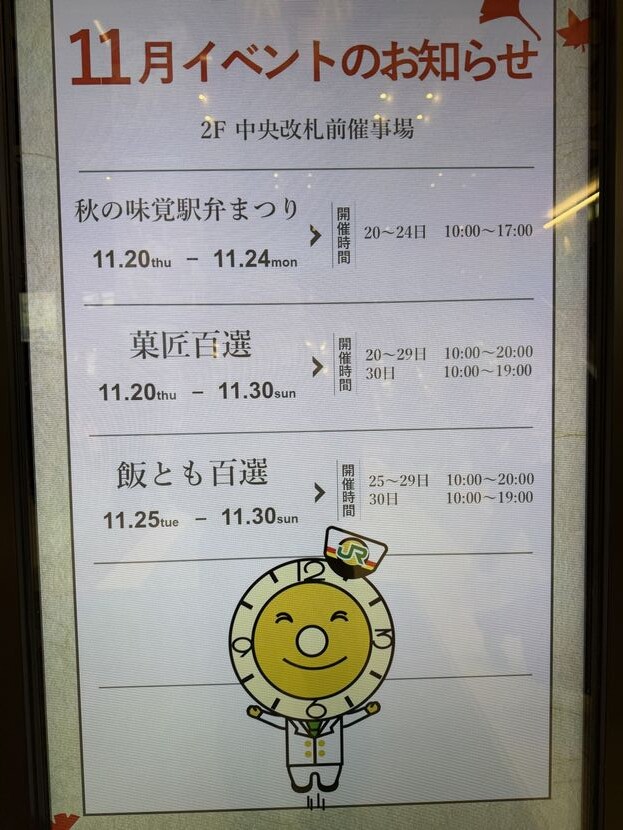 | 11月20日~11月24日 | 秋の味覚駅弁まつり:10時~17時 |