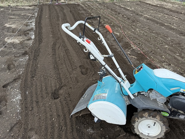 その後管理機(耕運機:まめトラ)で耕運します。