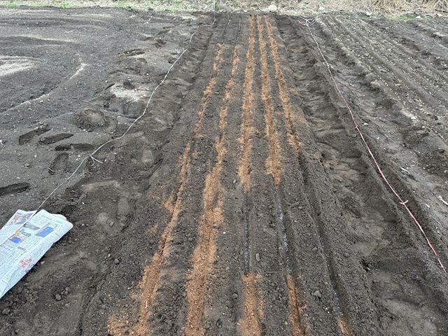 その畝に溝を立てます。